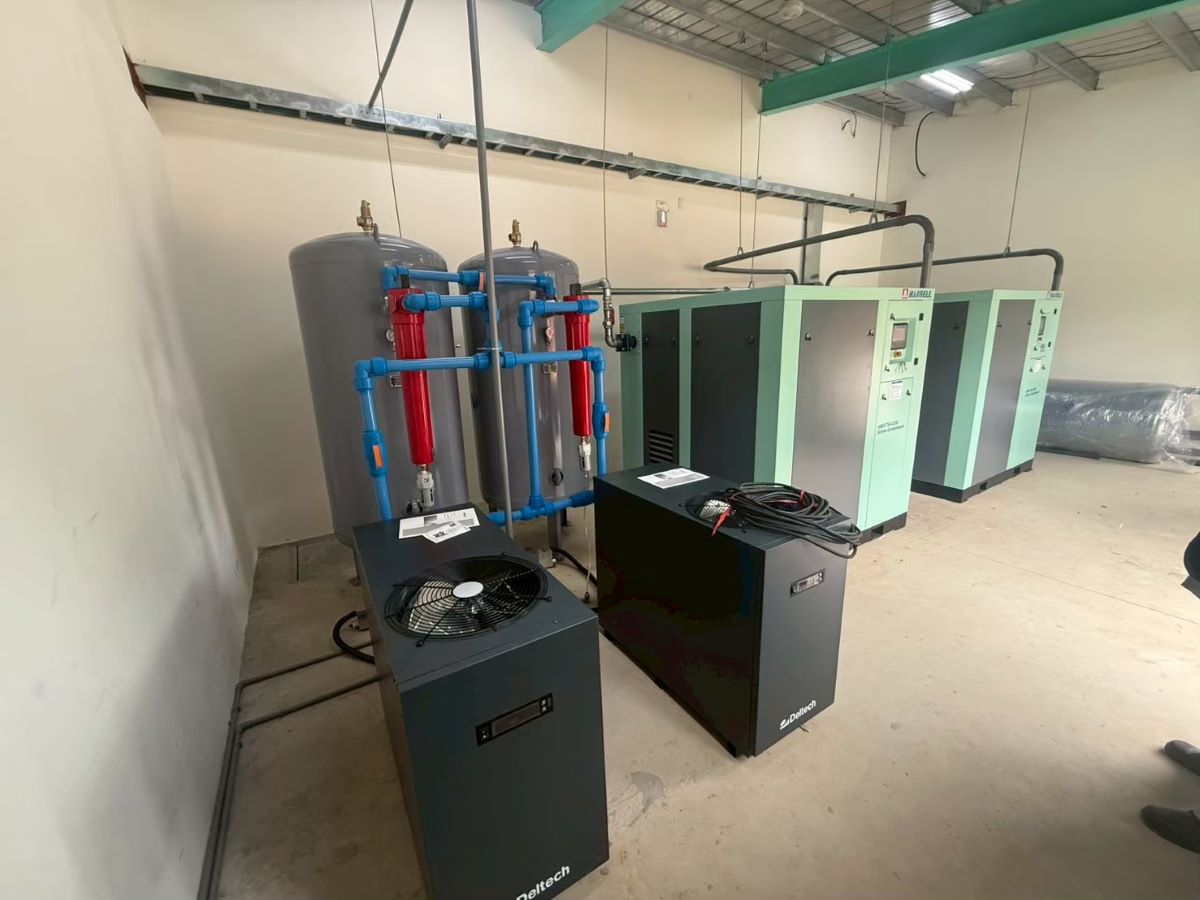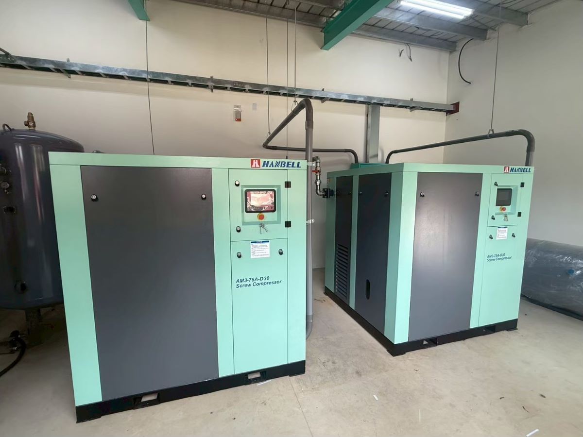 某製造業客戶於新建廠房中,選用 2 套漢鐘 100HP 空壓機設備,搭配高效節能乾燥機,