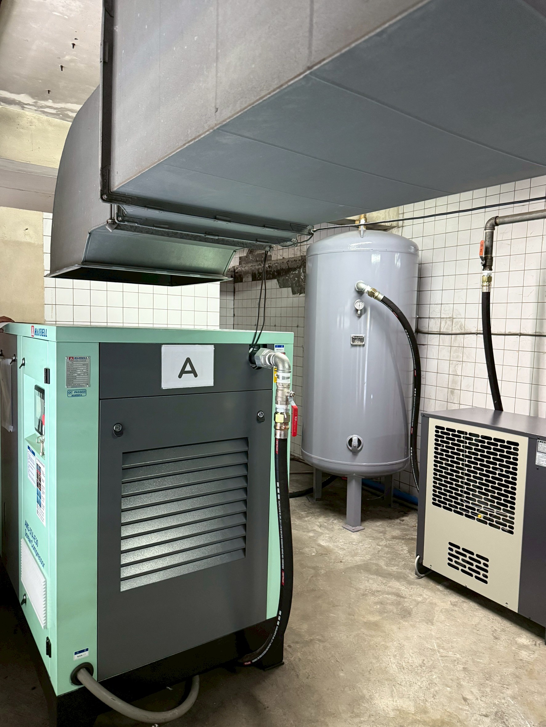 儲氣系統升級:將原本 360L儲氣桶放大至1000L,提升系統緩衝容量,減少頻繁啟停,延長機組壽命。