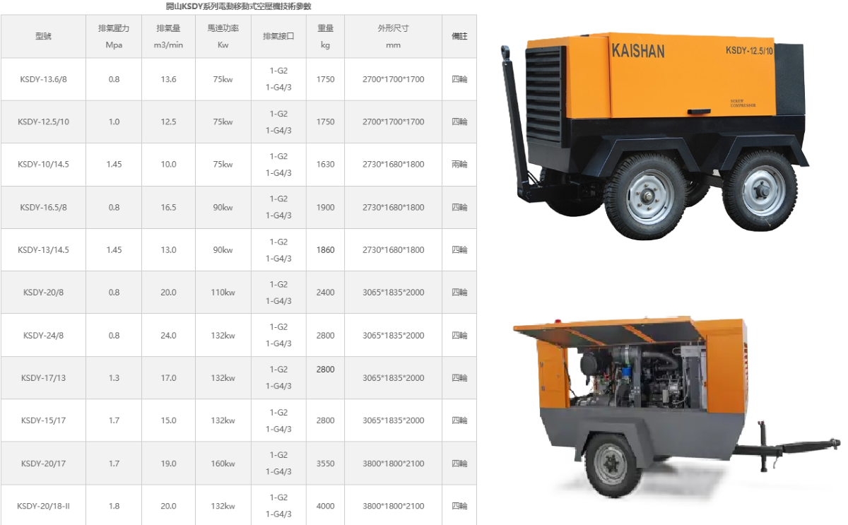 本公司今日宣佈引進開山集團(Kaishan)最受好評的兩大系列:LGCY 柴油移動式與 KSDY 電動移動式螺桿空壓機。